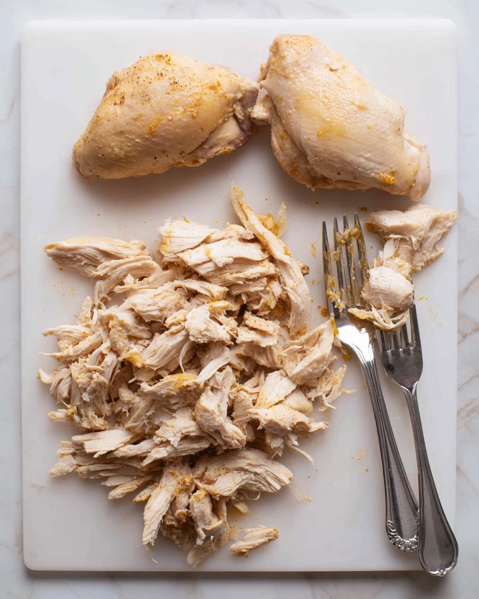 I usually use two forks, but I can also place the cooked chicken in a bowl and shred it quickly using a hand mixer on low speed.