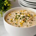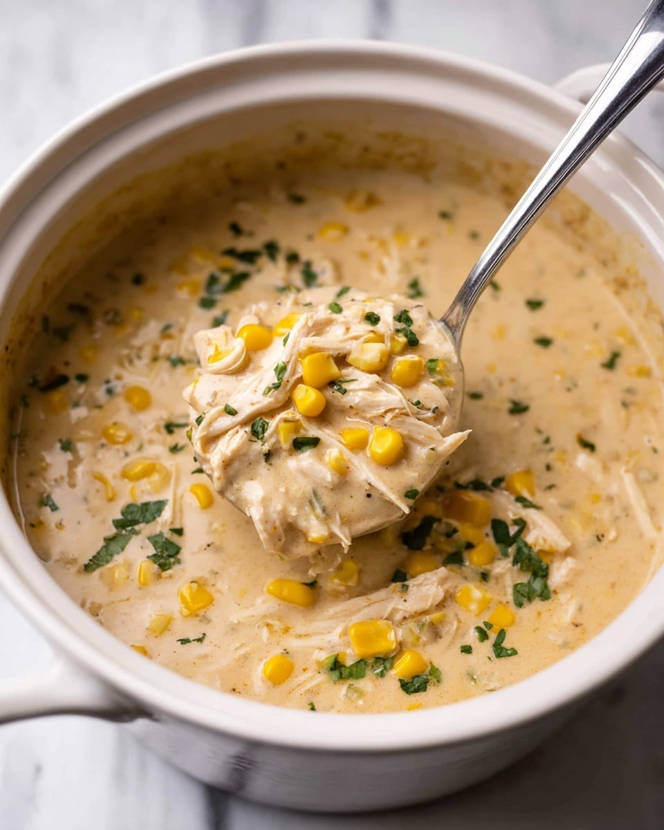 A rich, creamy, and flavorful chicken chili made effortlessly in the slow cooker. Packed with tender shredded chicken, white beans, corn, green chiles, and a hint of spice, this comforting dish is finished with cream cheese and half and half for irresistible smoothness.