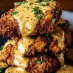 A crispy, golden pretzel-crusted chicken served with a creamy, tangy mustard-cheddar sauce. This dish balances crunchy texture with rich flavor and is perfect for a special yet easy dinner.