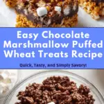 These Puffed Wheat Squares With Marshmallows are a quick and delicious no-bake treat combining toasted puffed wheat, a rich chocolate sauce, and melty marshmallows for a gooey, crunchy dessert perfect for sharing.