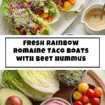 Drizzle your tahini dressing generously over each assembled taco boat or serve it on the side for dipping. These rainbow tacos are best enjoyed fresh to savor the crispness of the romaine and the creamy contrast of the hummus and avocado. The whole process takes just about 15 minutes, so they’re perfect for a quick, healthy fix that feels indulgent and satisfying.