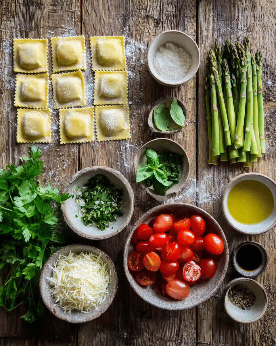 This Ravioli with Tomatoes, Asparagus, Garlic, and Herbs is a light and vibrant pasta dish combining tender ravioli with juicy tomatoes, crisp asparagus, and fresh herbs in a buttery garlic sauce. It’s fresh, colorful, and ready in under 30 minutes.