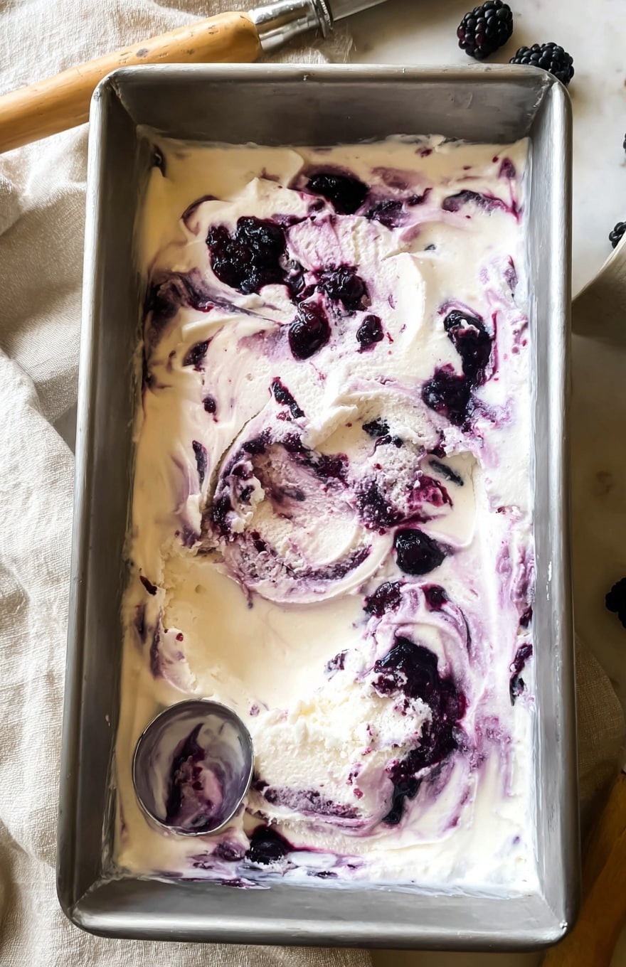 A creamy no-churn blueberry ice cream with a tangy blueberry swirl and a hint of lime. Made without an ice cream maker, this refreshing summer dessert is simple, fruity, and indulgent.