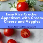 These Simple Ornament Appetizers are charming, easy-to-make bite-sized snacks perfect for holiday parties or festive gatherings. Featuring crisp rice crackers topped with creamy whipped cream cheese, fresh dill, vibrant yellow bell pepper strips, and juicy cherry tomato halves, they combine a delightful mix of textures and colors that resemble decorative ornaments.