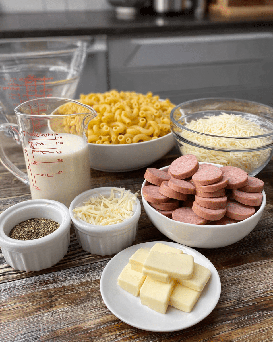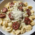A rich and creamy one-pan pasta dish featuring smoky kielbasa sausage tossed with tender pasta in a silky Parmesan Alfredo sauce. Perfect for busy weeknights or cozy family dinners.