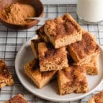 I love this recipe because it’s simple, comforting, and perfect for any occasion. The blondie base is rich and buttery, with just the right amount of chew, and the cinnamon-sugar topping gives them a sweet, crackly finish. They come together quickly without any need for chilling or rolling dough, making them ideal for a last-minute dessert or bake sale treat.