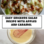 Snickers Salad is a quick and delicious dessert salad combining creamy vanilla pudding, whipped topping, chopped Snickers bars, and crisp Granny Smith apples, all drizzled with caramel sauce. It’s a crowd-pleaser that’s perfect for potlucks or family gatherings, serving up a sweet, crunchy, and creamy treat in just 15 minutes.