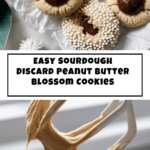Delight in these soft and chewy Sourdough Discard Peanut Butter Blossoms, a perfect twist on the classic peanut butter blossom cookie. Incorporating sourdough discard adds a subtle tang and moisture, making these cookies irresistibly tender. Topped with a classic Hershey’s Kiss and optional sprinkles, they offer a delightful combination of sweet, salty, and nutty flavors—ideal for any occasion or holiday treat.