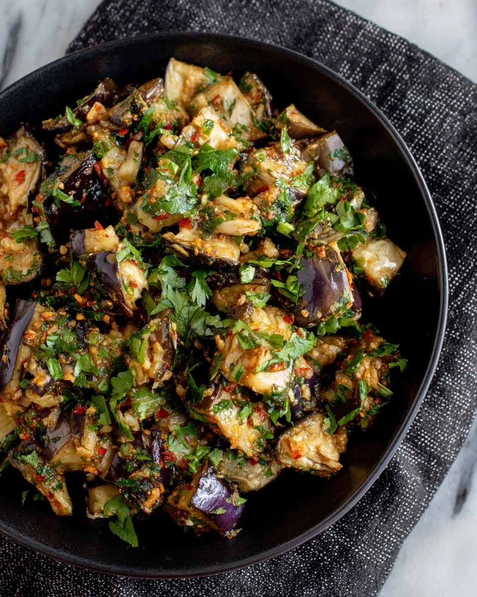 - Fold in roasted eggplant, parsley, and coriander. Season with salt and pepper.