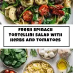 A vibrant and fresh Spinach Tortellini Salad combining tender cheese tortellini with baby spinach, cherry tomatoes, fresh herbs, and a zesty homemade dressing. This easy-to-make salad is perfect for a light lunch or a colorful side dish.