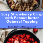This Strawberry Crisp with Peanut Butter Oatmeal Cookie Crumble is a delightful dessert featuring juicy, sweet strawberries baked under a crunchy, peanut butter-infused oat topping. Finished with an optional drizzle of dark chocolate, this treat combines fruity freshness with a rich, nutty crumble perfect for any occasion.