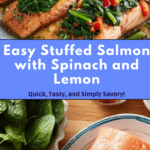 This Stuffed Salmon with Spinach recipe is a flavorful and elegant dish featuring tender salmon fillets filled with a savory mixture of spinach, fire-roasted red peppers, capers, preserved lemon, and Greek yogurt. Seasoned with Aleppo pepper and baked to perfection, it offers a perfect balance of freshness, tang, and a subtle kick, making it a healthy and impressive meal for any occasion.