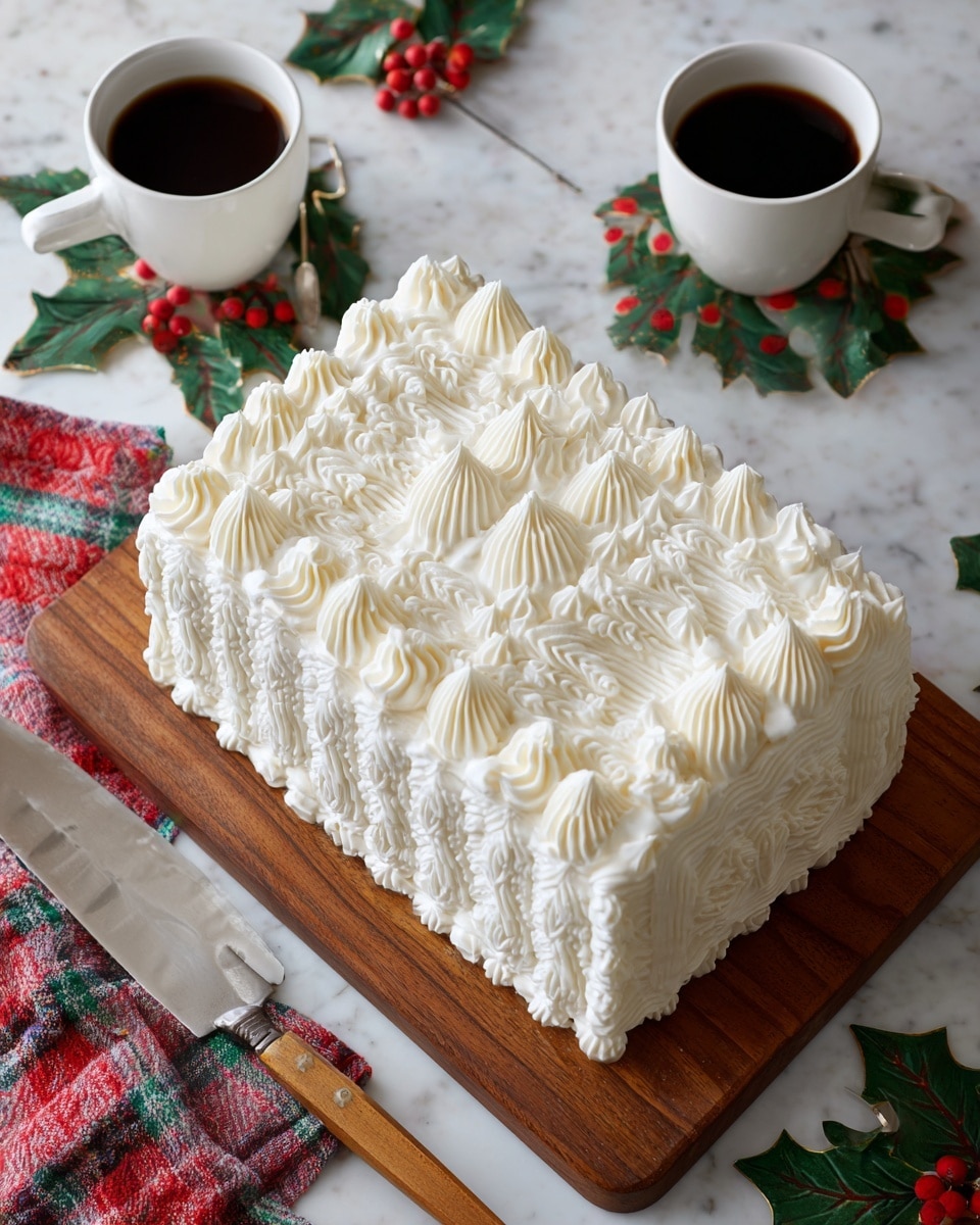 I love this cake because it captures the feeling of curling up with a mug of hot chocolate on a chilly day — but in cake form. The cake itself is rich and chocolatey thanks to the cocoa powder and hot cocoa mix, while the marshmallow buttercream frosting brings in that gooey fluffiness I crave this time of year. It’s comforting, festive, and just a bit nostalgic.