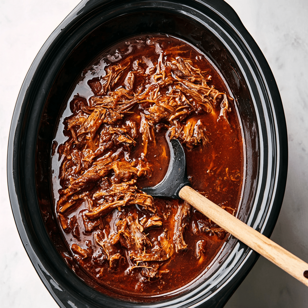 - Cover and cook on low for 8–9 hours or on high for 5–6 hours until beef is fall-apart tender.