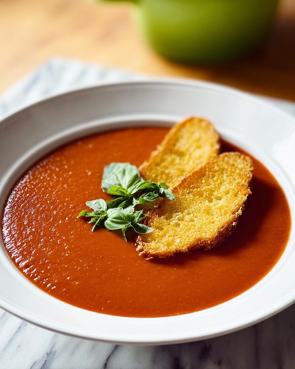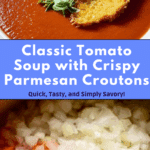 This tomato soup with parmesan croutons is creamy, flavorful, and comforting, featuring roasted tomato richness balanced with fresh herbs and topped with crispy, cheesy croutons. It’s a cozy meal perfect for any season.