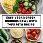 This Vegan Greek Hummus Bowl with Tofu Feta is a vibrant and flavorful dish blending nutritious millet, fresh vegetables, and tangy Mediterranean flavors. It features marinated veggies, olives, sun-dried tomatoes, and creamy hummus, complemented by optional tofu-based feta cheese for a protein-rich vegan twist. Perfect for a healthy lunch or light dinner, this bowl is easy to prepare in about 30 minutes.