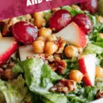 - Mix the salad: In a large bowl, combine the diced apples, sliced grapes, chopped celery (if using), chopped walnuts, chickpeas, and dressing. Stir thoroughly to coat all ingredients evenly with the dressing.