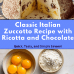 Gathering simple but high-quality ingredients is the secret to this Zuccotto Recipe’s success. Each component plays its part beautifully—from the silky ricotta to the delicate sponge, rich chocolate chips, and fragrant liqueur, creating a harmonious blend of taste, texture, and color.